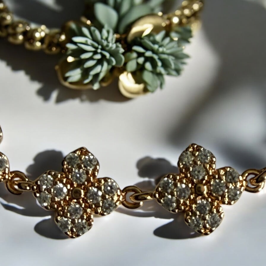 Material is environmental copper, 18K gold electroplated and small cz stones